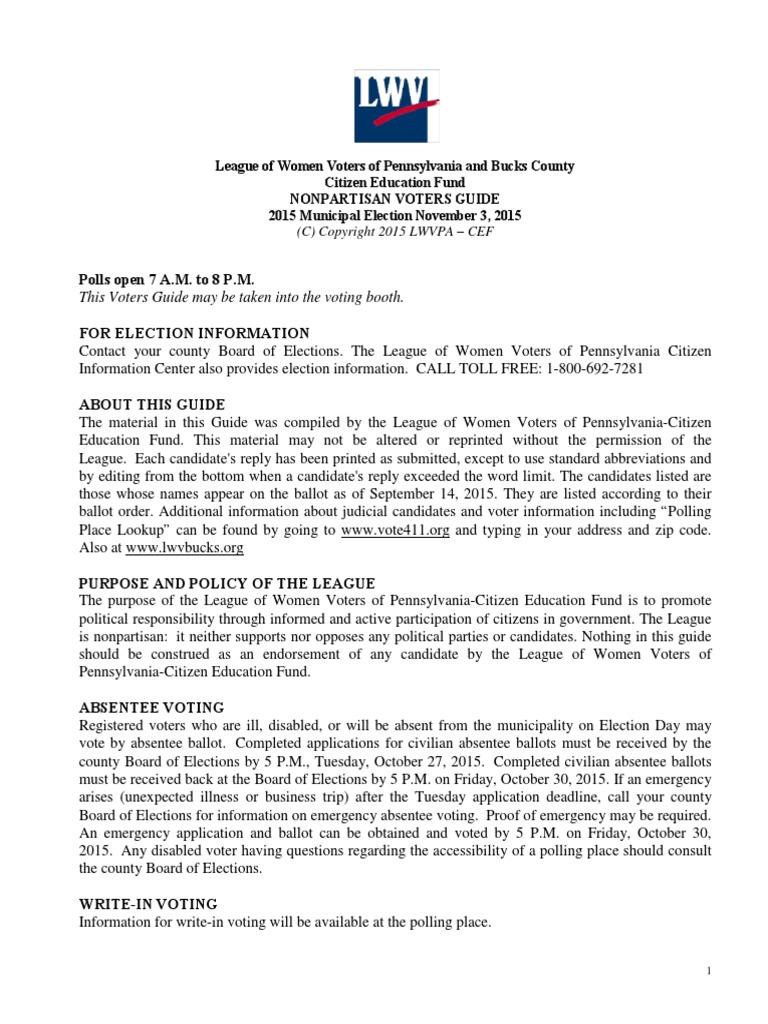 2015 Municipal Election Bucks County League Of Women Voters Of Bucks County Pdf Judge Supreme Courts